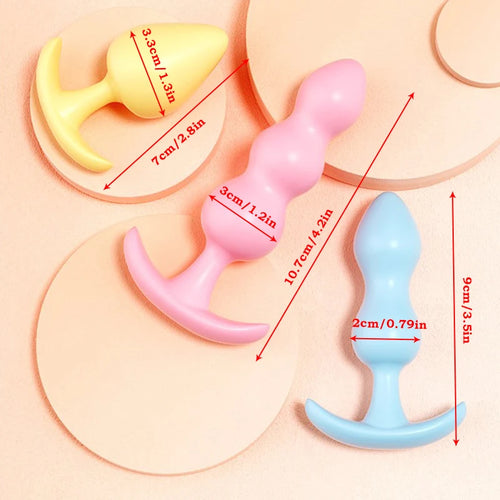 3pcs/Set Soft Silicone Anal Plugs Beginner Anal Stimulator Trainer Sex Play Toy