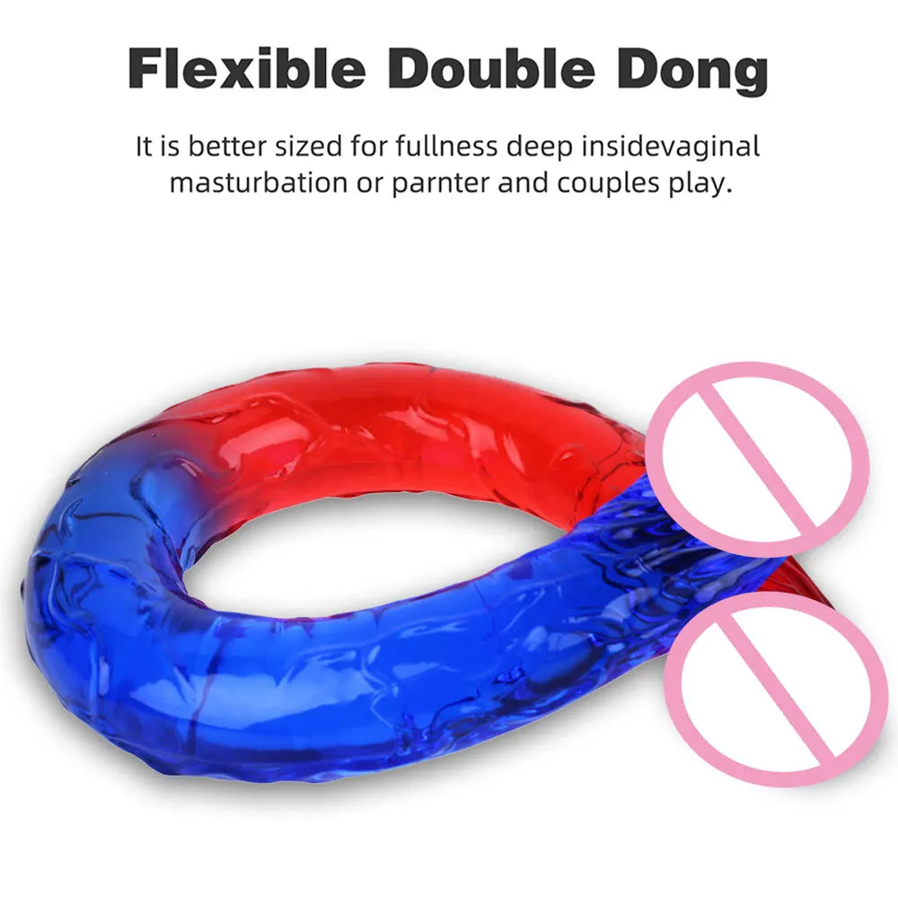 Double head Two colors Realistic Dildo Long Anal Play for Women Couple Ended Dildo Flexible Big Penis Adult Sex Toy for Lesbian