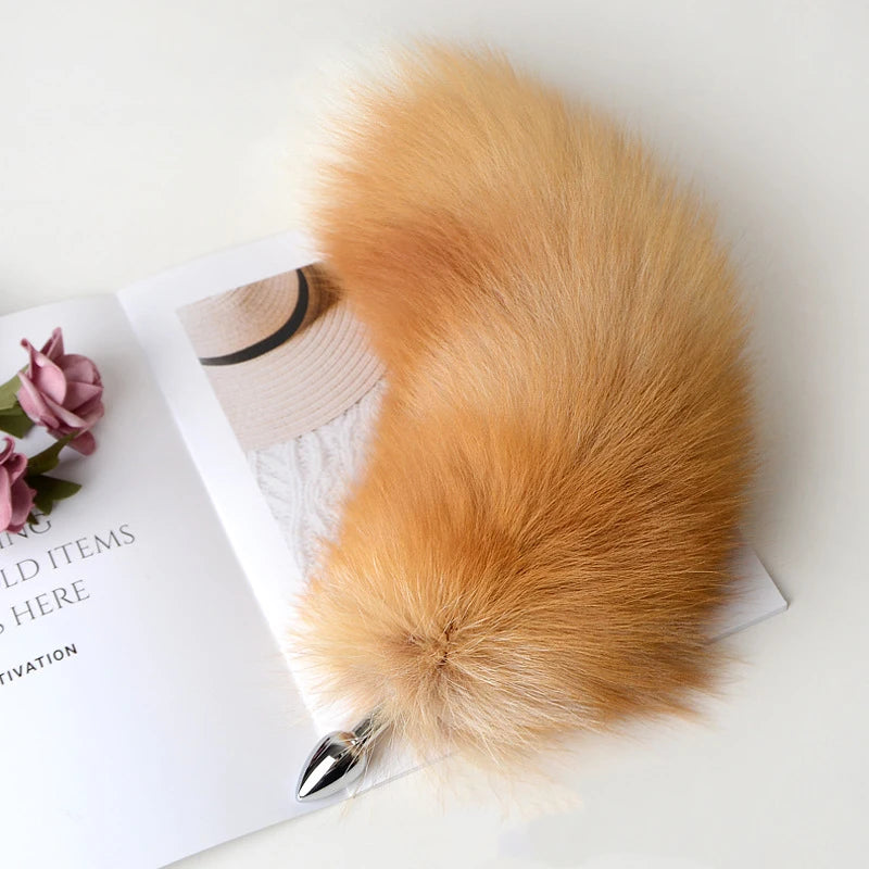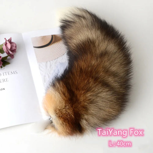Separable Metal Anal Plug Real Fox Tail Role Play Butt Plug Anal Sex